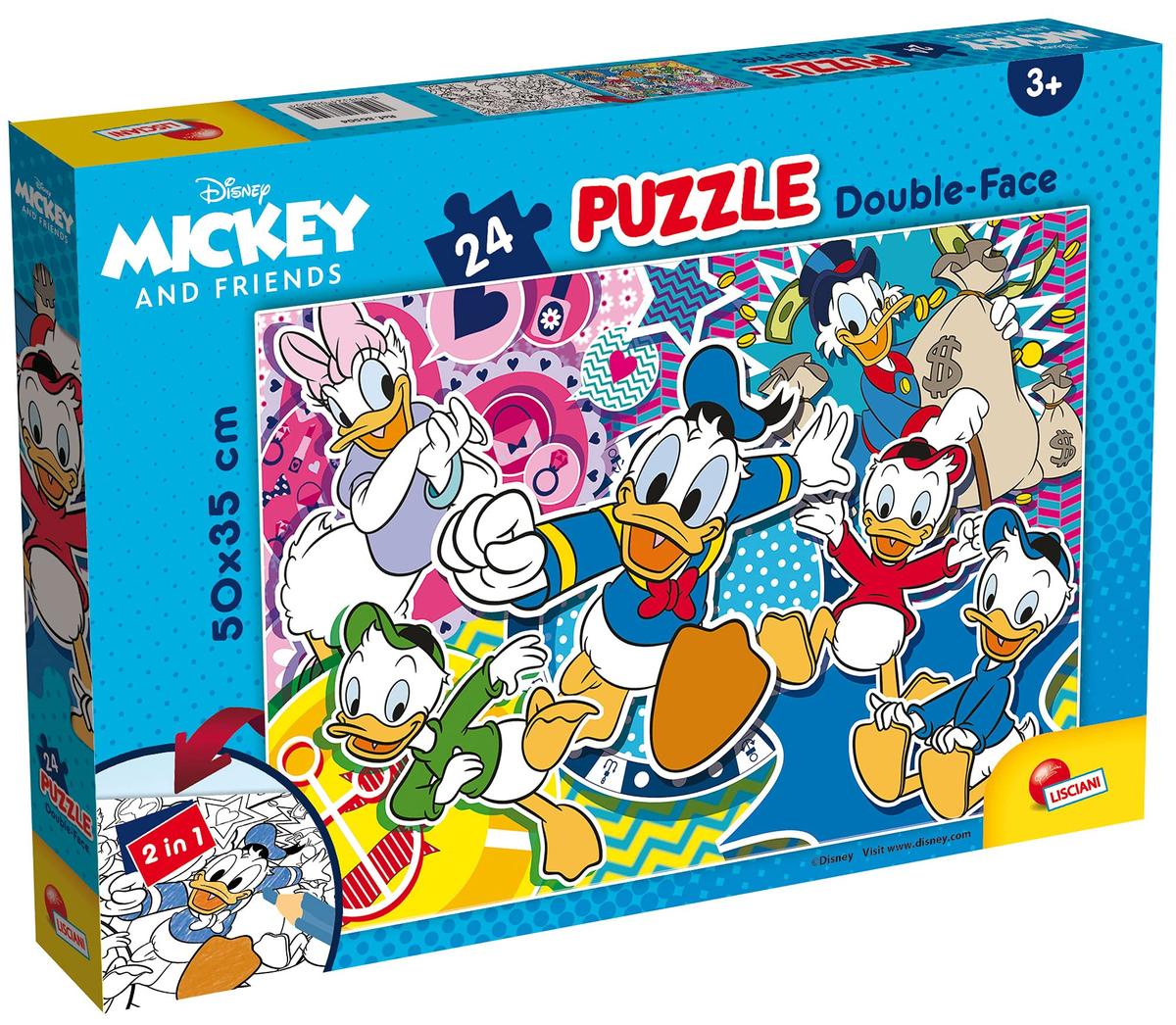 Unisciti a Paperino e la sua famiglia con il Puzzle da 24 Pezzi Double Face Plus - Paperino di Lisciani. Questo puzzle double face presenta una vivace illustrazione di Paperino e i suoi amici su un lato e un'altra immagine colorata sul retro, offrendo due puzzle in uno. Realizzato con materiali di alta qualit e pezzi grandi, perfetto per le mani dei pi piccoli, facilitando il montaggio. Ideale per bambini dai 3 anni in su, questo puzzle aiuta a sviluppare la coordinazione occhio - mano, le abilit motorie e la concentrazione, offrendo un'attivit educativa e divertente. Perfetto per tutti i piccoli fan di Paperino e della famiglia Disney.