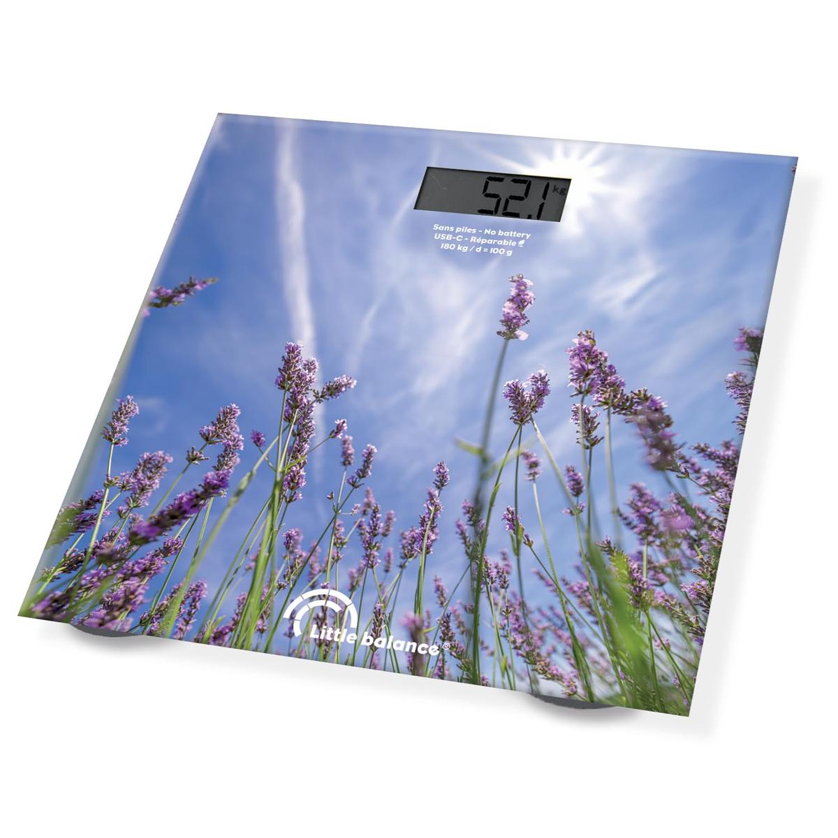 Little Balance Digital Bathroom Scales USB-C Rechargeable Lavender 28 x 1.8 x 16 cm