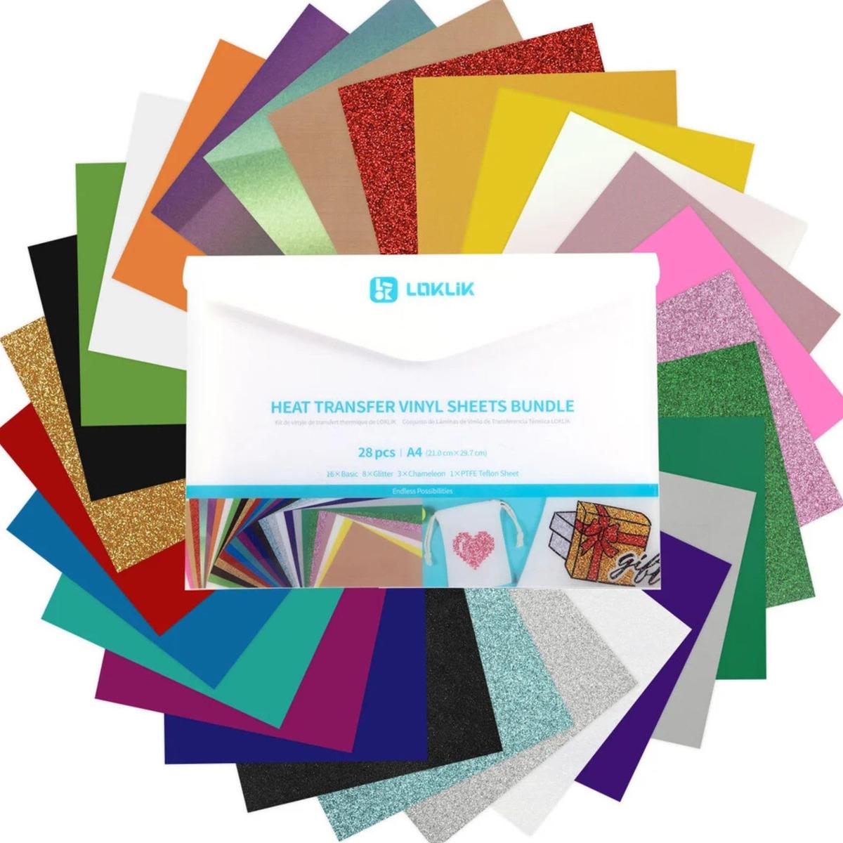 LOKLiK Heat Transfer Vinyl Material Bundle 27 Colors A4 Size Includes Teflon Sheet