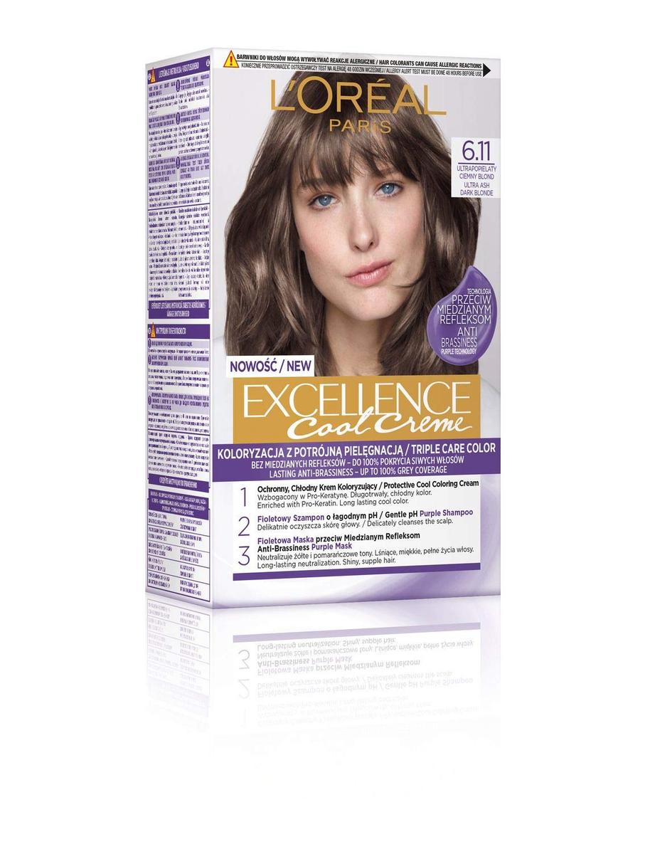 L'Oreal Paris Excellence Creme Hair Color 6.11 Ultra Ash Dark Blonde 100% Gray Coverage