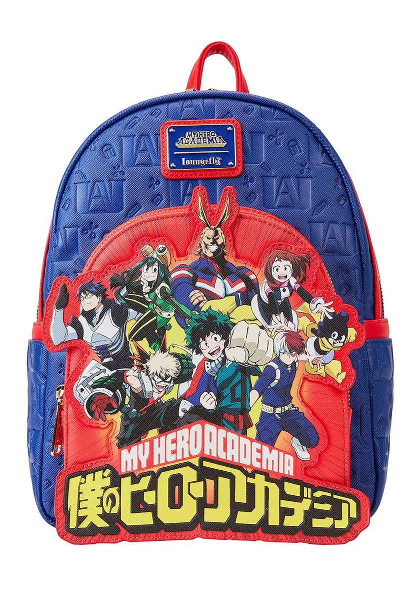 Μέγεθος: 22,5x26,2x11,2cm. Το σακίδιο πλάτης Loungefly My Hero Academia με ανάγλυφο λογότυπο είναι κατασκευασμένο από vegan δέρμα Saffiano (polyurethane). Το σακίδιο διαθέτει ρυθμιζόμενα λουριά ώμου και γυαλιστερό hardware χρυσαφί χρώματος. Πρόσθετα χαρακτηριστικά περιλαμβάνουν εφαρμογή, ανάγλυφη, κοίλη και τυπωμένη λεπτομέρεια. Προσέξτε το αντίστοιχο εσωτερικό επένδυση.