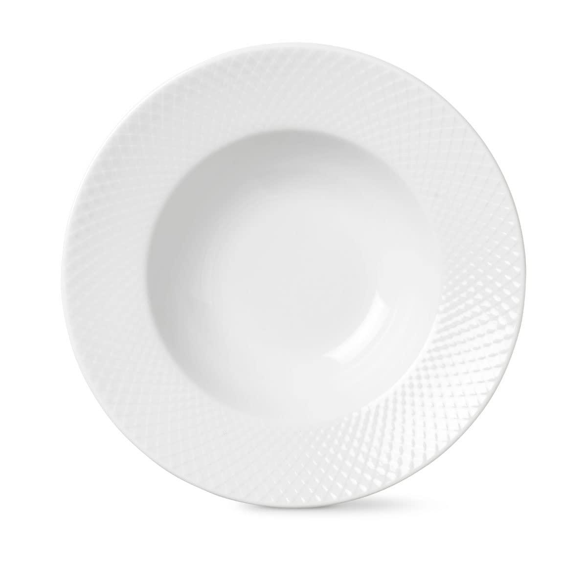 Lyngby Porcelain Rhombe White Soup Plate 24.5 cm Timeless Classic Design
