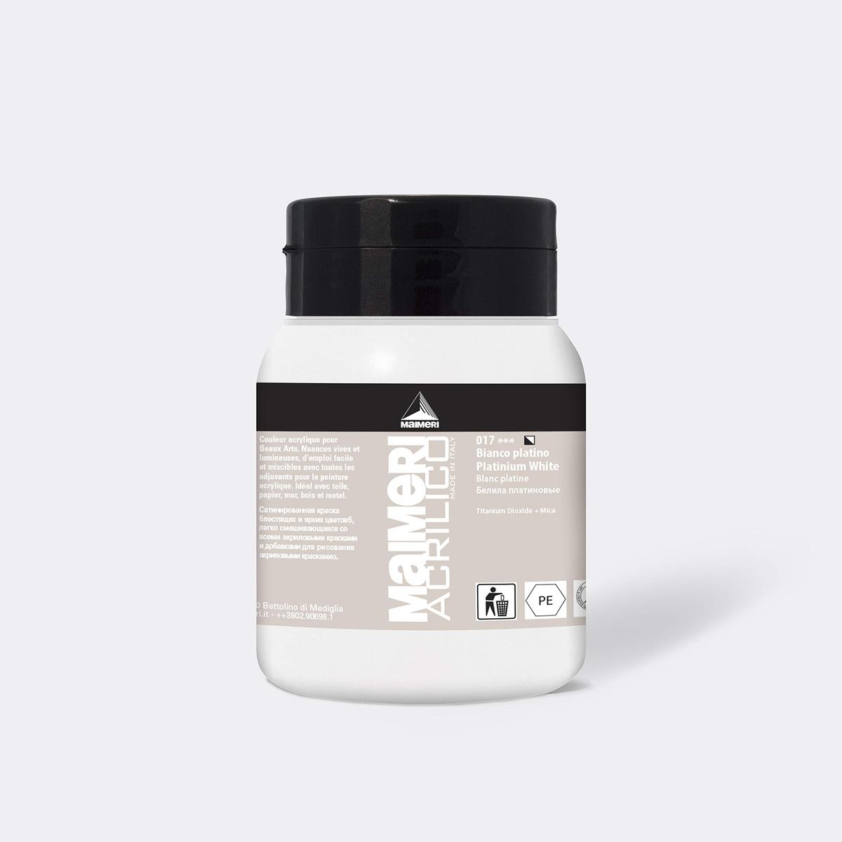 Maimeri Acrylic Paint Platinum White 017 500 ml Artist Grade