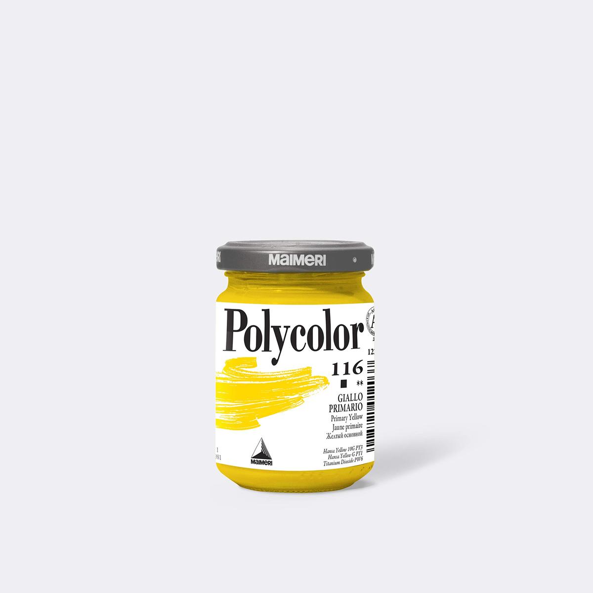Maimeri Polycolor Acrylic Paint Primary Yellow 116 140 ml 1 Jar