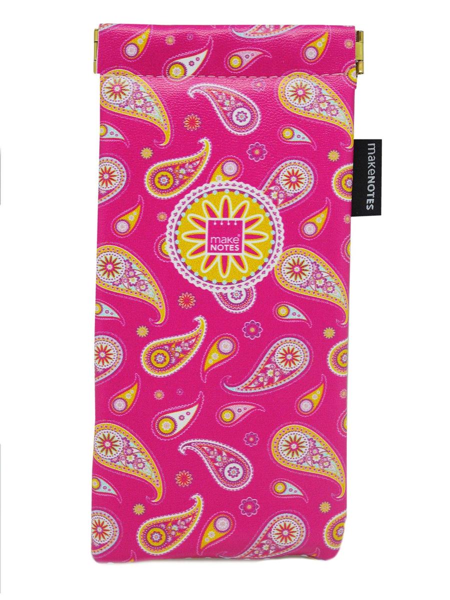 Make Notes gb047 Eyeglasses Case Spring Lock Paisley Two Pink Synthetic Leather