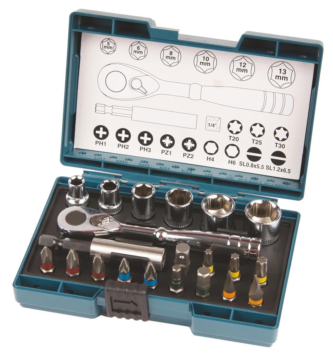 Makita B-54081 Ratchet and Bit Set 21 Pieces Black Alloy Steel