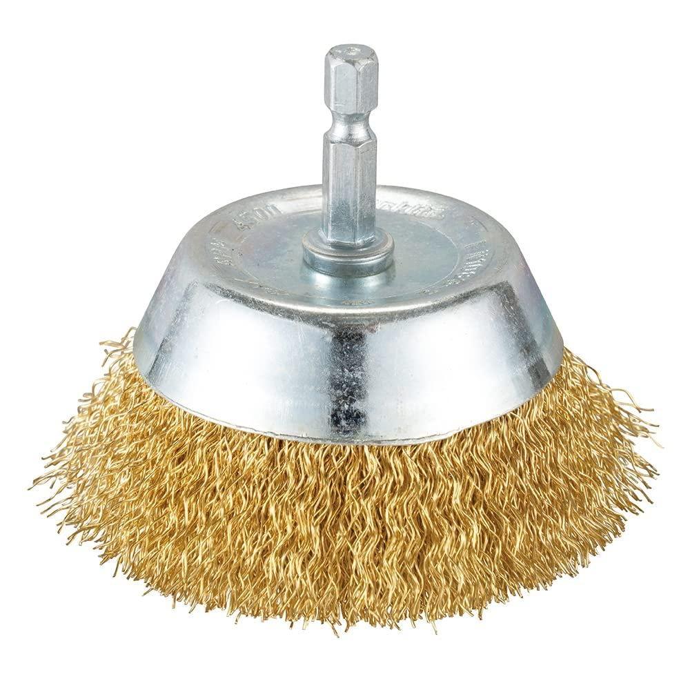 Makita D-73639 Wire Cup Brush 75 mm Brass Coated 0.3 mm Wire 1/4 Hex Shank