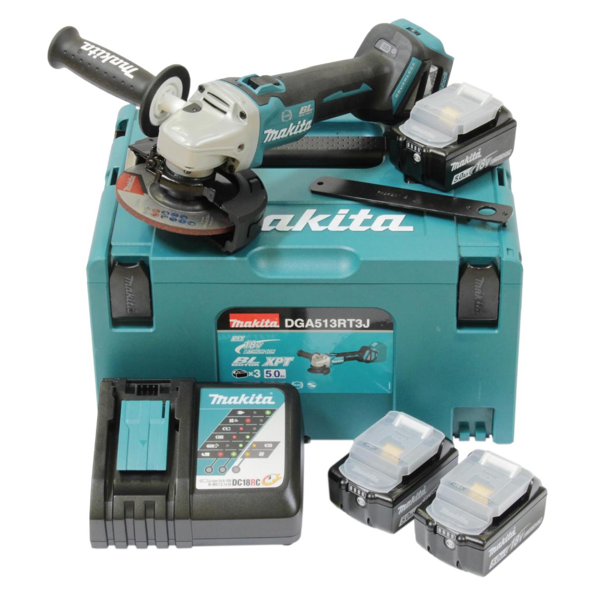 Makita DGA513RT3J Cordless Angle Grinder 18V 125 mm 3 x 5.0Ah Batteries Brushless Motor