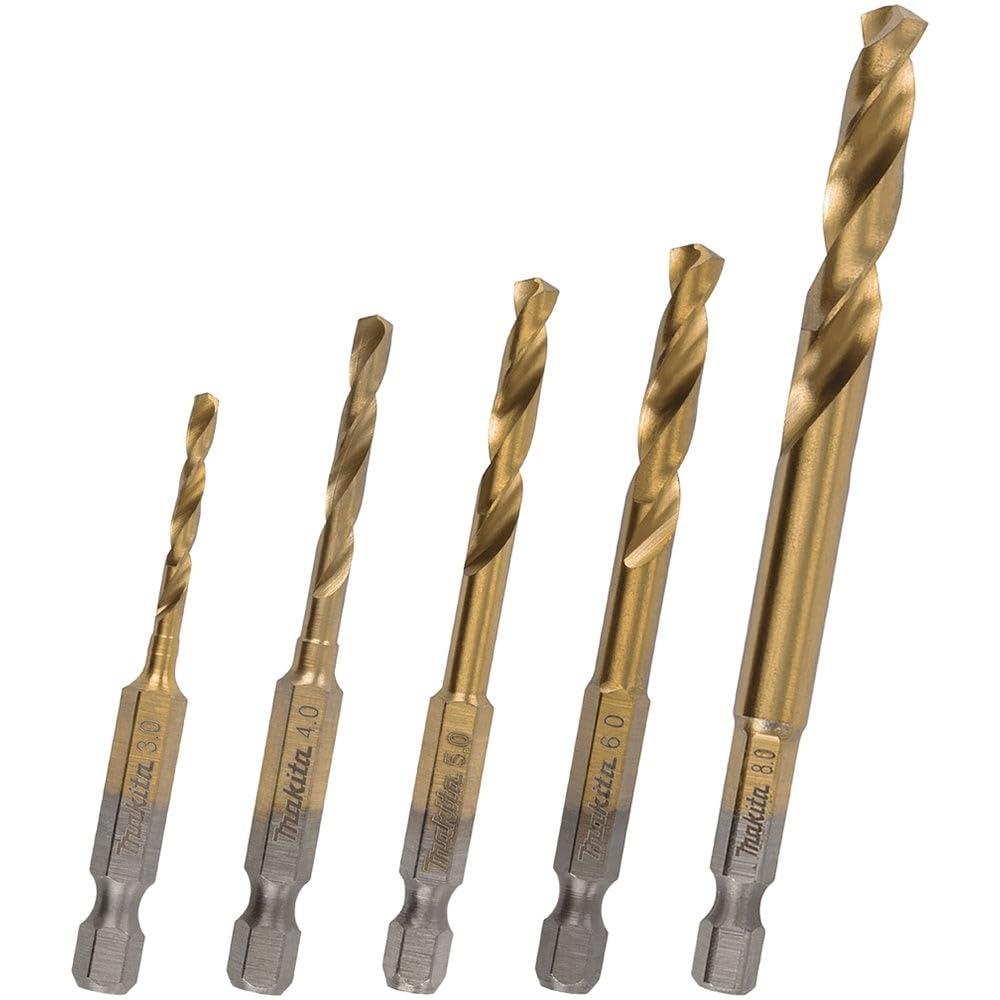 Makita Metal Drill Bit Set HSS-TIN 1/4 Hex 5 Pieces