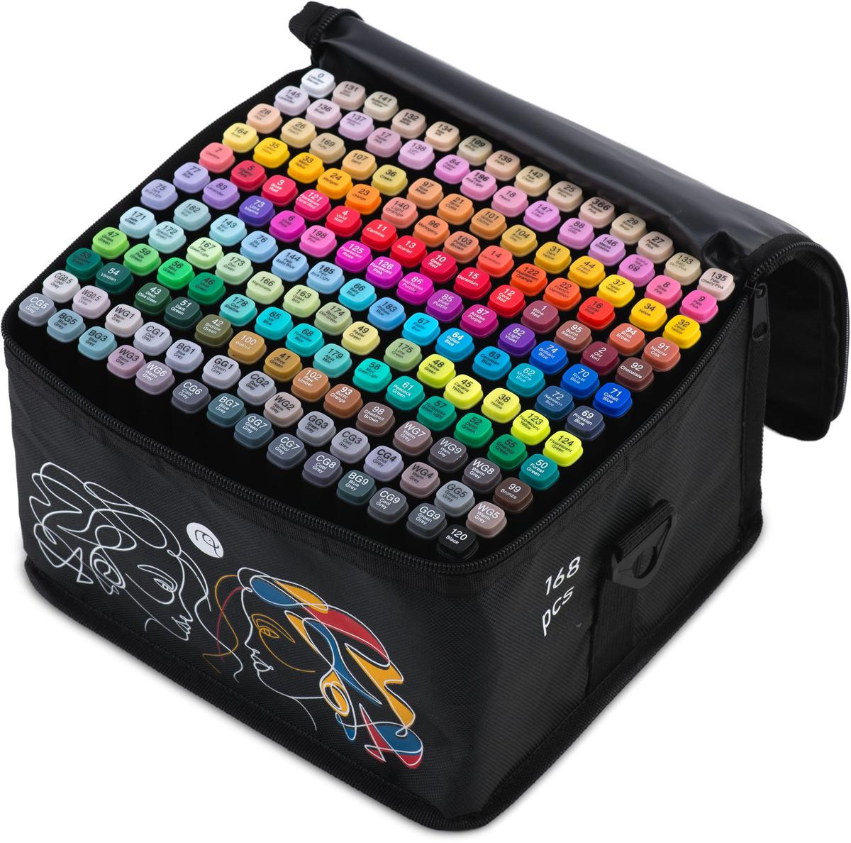 Nukido Alcohol Marker Pens 168 Colors Dual Tip Waterproof With Carry Case