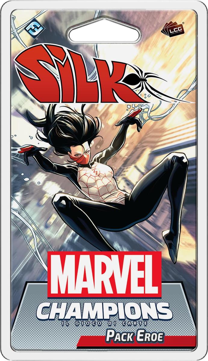 ESPANSIONE PERMVC LCG - MARVEL CHAMPIONS, IL GIOCO DI CARTE.Dopo essere stata morsa dallo stesso ragno radioattivo che morse Peter Parker e aver sviluppato poteri simili ai suoi, Cindy Moon ha trascorso diversi anni della sua vita isolata in un bunker, da dove protegge la Terra dai feroci cacciatori di ragni noti come Eredi.Oramai libera da quel bunker, Cindy combatte il crimine per le strade di New York, sia svolgendo il suo lavoro di giornalista dinchiesta, che nei panni della supereroina Silk.Questo pack Eroe da 60 carte include:un mazzo Silk completo precostruito!nuove carte da poter aggiungere a qualsiasi altro mazzo eroe di Marvel Champions!un set di incontri dedicato a Morlun!