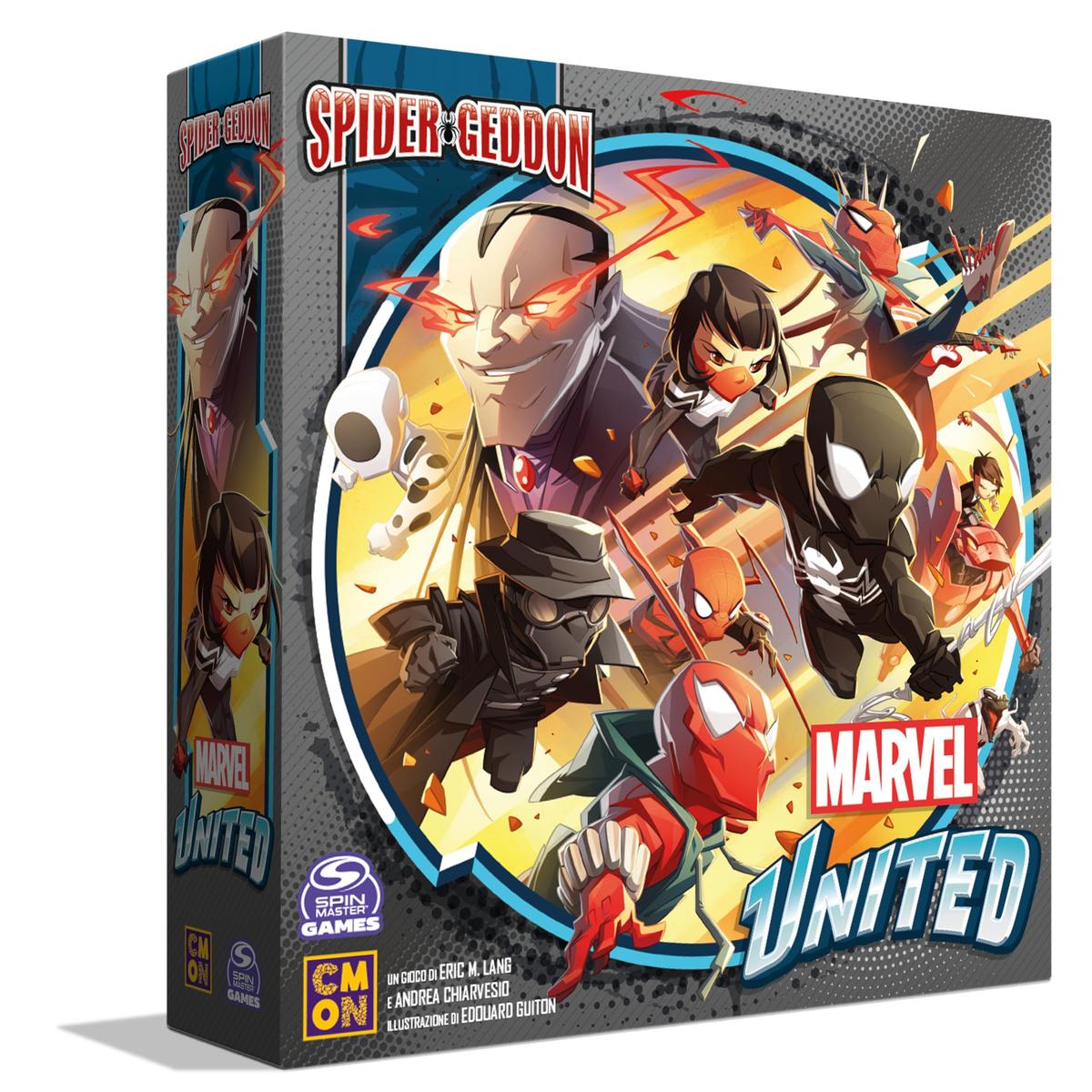 Essere un eroe con poteri di ragno comporta da sempre non solo grandi responsabilità, ma ancheenormi pericoli. Ora che i criminali stanno convergendo da ogni angolo del multiverso per braccarli, i ragno-eroi devono mettere da parte la loro indole solitaria e far fronte comune se vogliono sperare di fermare l&rsquoavanzata del male. Viaggeranno attraverso le dimensioni in una disperata lotta per proteggere gli innocenti, sventare le minacce più letali e affrontare i criminali una volta per tutte.In Marvel United: Spider-Geddon, da 1 a 4 giocatori assumono il ruolo di eroi e collaborano per sventare il piano supremo di un criminale. In alternativa, nella modalità Supercriminale, 1 giocatore assume il ruolo del criminale contro un massimo di 4 giocatori eroe.I giocatori creano una storia pescando le carte del criminale e giocando le loro carte eroe per contrastare i piani del nemico. Le carte permettono ai giocatori di muovere il proprio eroe, salvare i civili, sconfiggere i malviventi, sventare le minacce e usare i poteri unici del loro eroe. Scegliendo attentamente le carte da giocare, gli eroi potranno unire le loro capacità e agire come una squadra perfetta.Nel frattempo, il criminale vaga per la città per portare avanti il suo malvagio piano, diffondendo il caos, schierando i suoi gregari e attaccando gli eroi. Soltanto una volta completate le missioni necessarie, gli eroi saranno pronti per attaccare direttamente il criminale e sconfiggerlo una volta per tutte! Contenuto: 6 Miniature Eroe, 2 Miniature Antieroe, 2 Miniature Criminale, 96 Carte Eroe, 4 Schede del Criminale, 48 Carte Piano Supremo, 24 Carte Minaccia, 7 Carte Equipaggiamento, 12 Carte Piano di Battaglia, 12 Carte Supercriminale, 8 Carte Supereroe, 8 Luoghi, 1 Guida della Missione, 6 Carte Missione, 2 Carte Sfida, 156 Segnalini, 1 Contatore del Criminale, 1 Regolamento.
