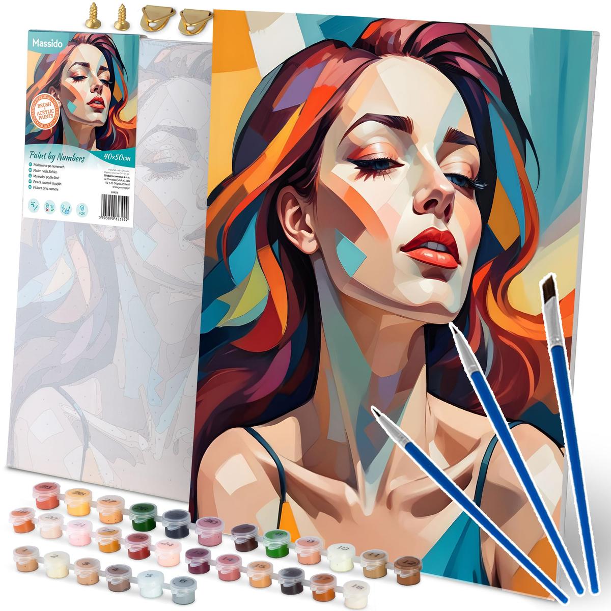 Massido Paint by Numbers Kit 40 x 50 cm Includes 3 Brushes, 30 Colors, Hanging Hooks