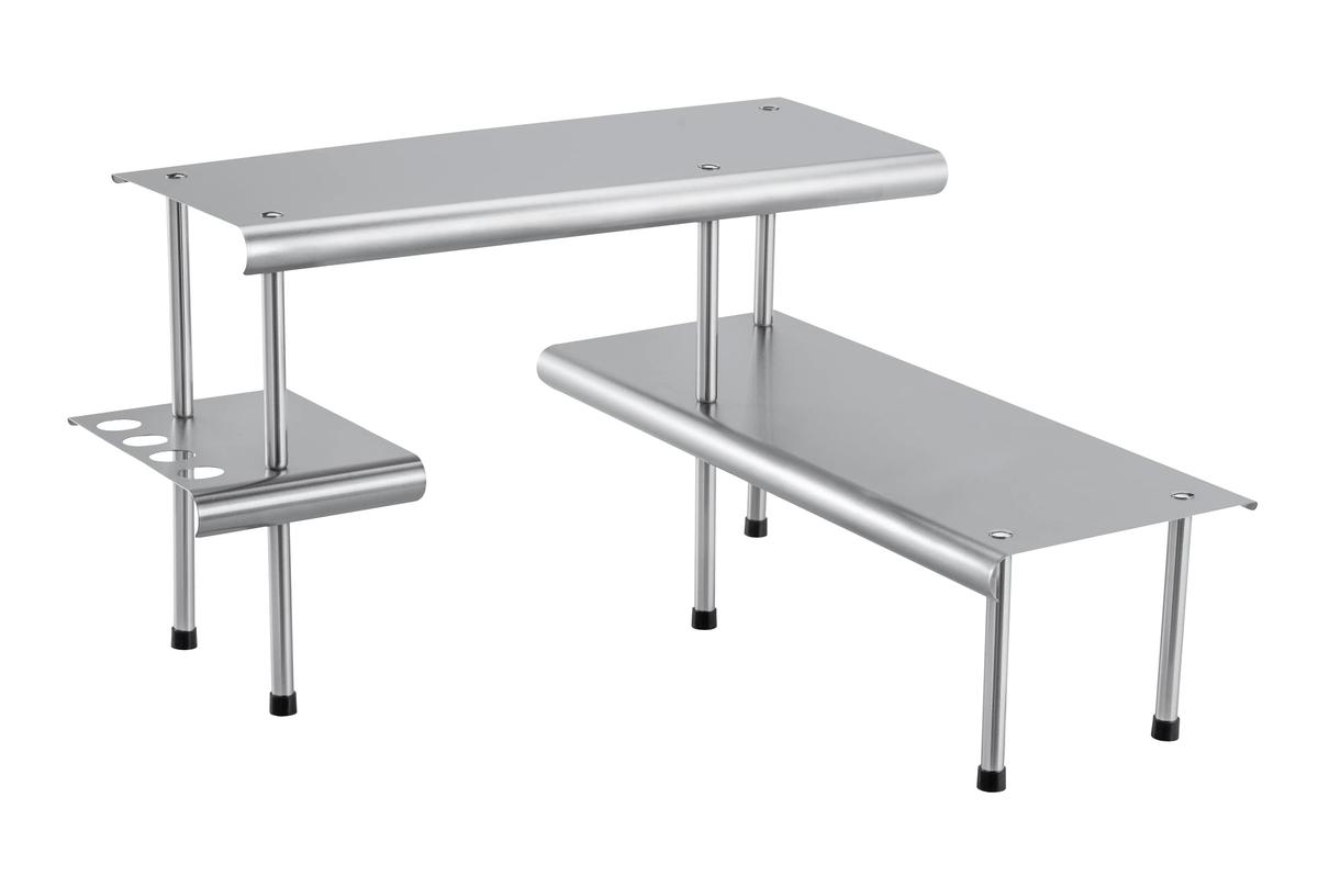 Το γωνιακό ράφι κουζίνας Massivo TRIO με 2 επίπεδα θα χωρέσει πολλά αντικείμενα και θα βοηθήσει να οργανώσεις το χώρο έξυπνα. Μπορεί να χρησιμοποιηθεί για την έκθεση φρέσκων βοτάνων, φλιτζανιών, φαρμάκων καθώς και αξεσουάρ κουζίνας. Έχει σταθερή κατασκευή και άριστη ποιότητα κατασκευής. Τα χαρακτηριστικά του προϊόντος περιλαμβάνουν τρία ράφια για τα απαραίτητα της κουζίνας, πλάτος ραφιού 20 cm, ανοξείδωτο χάλυβα και κομψό σχεδιασμό.