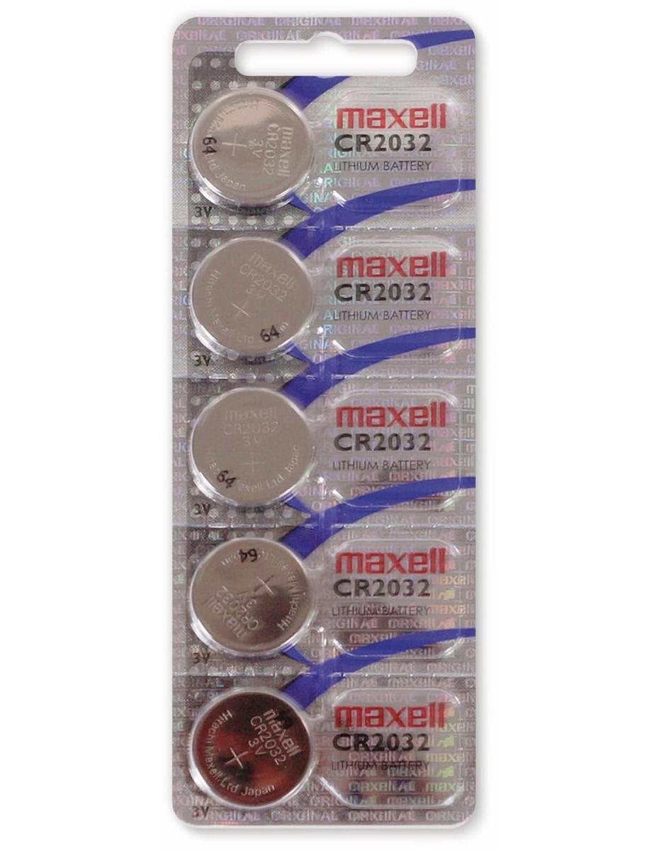 Maxell CR2032 Lithium Button Battery 3V 20 mm Diameter Pack of 5