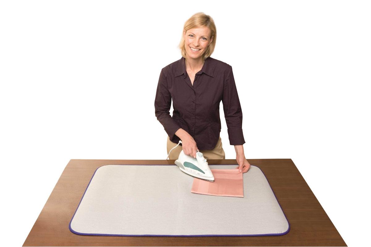 Cotton ironing pad made of strong cotton fabric (100%) with a 3mm thick foam lining (PU). The bottom layer is coated with aluminum particles, reflecting heat from the iron. Reduces ironing time by up to 50%. Suitable for all types of irons, including steam irons, as it absorbs moisture. Compact and ideal for home or travel use. Not suitable for steam irons on wooden or veneered tables. Features: time and energy-saving, cotton surface with foam lining, suitable for steam irons, saves money on electricity, for home or travel use.