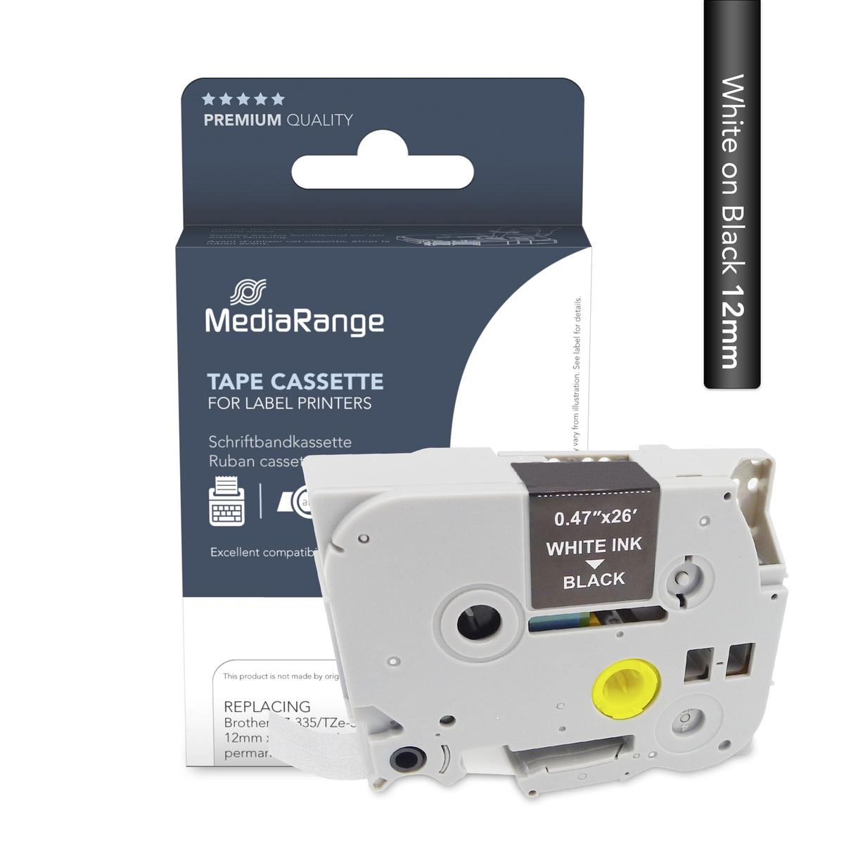 MediaRange MRBTZ335 Label Tape Cartridge 12 mm x 8 m White on Black