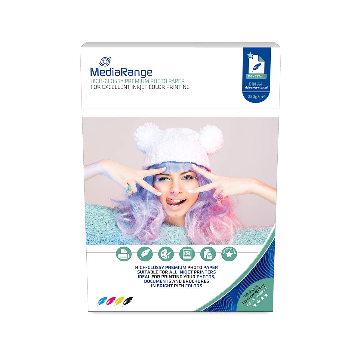 MediaRange Photo Paper A4 Size 210 x 297 mm High Gloss 220 g/m 100 Sheets