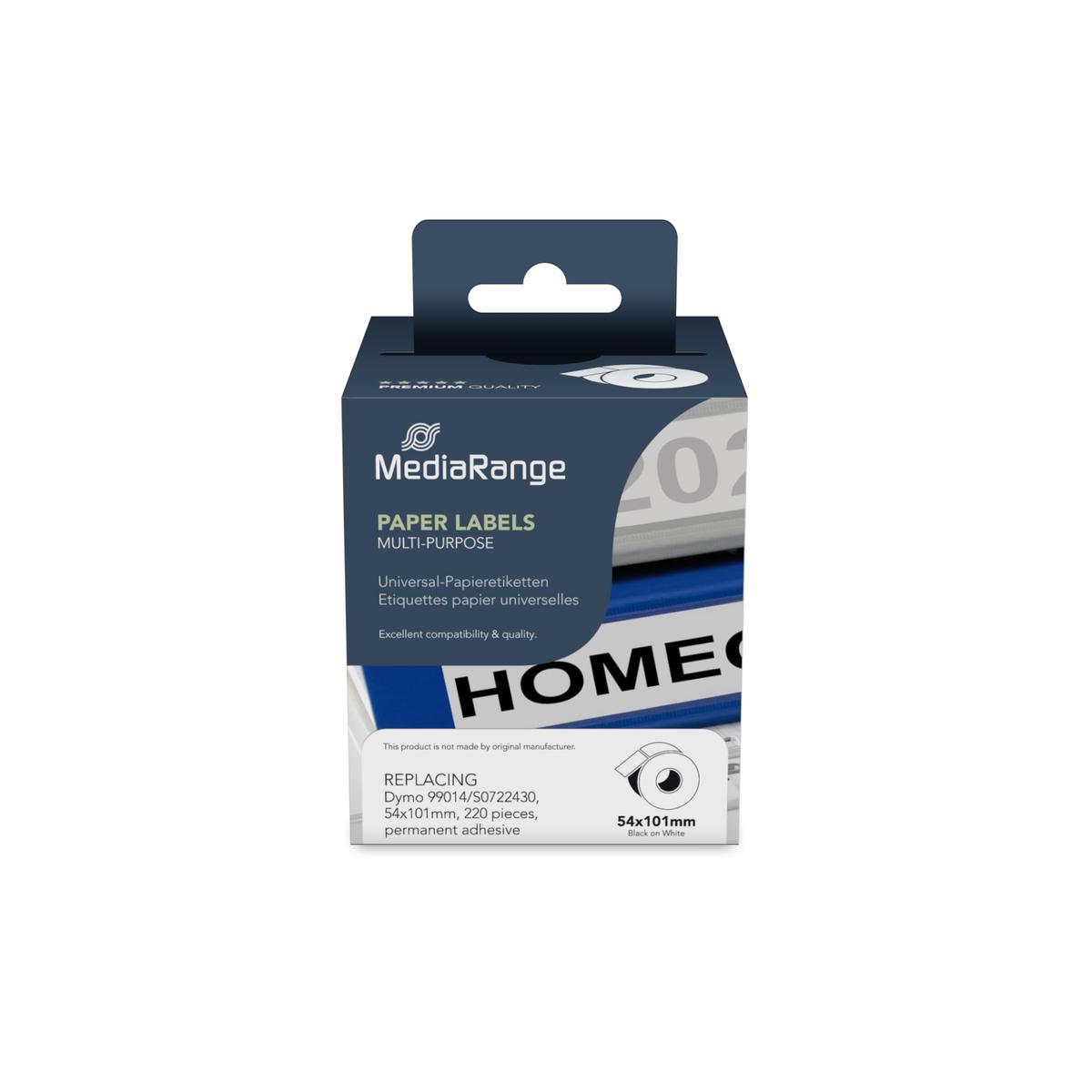 MediaRange Universal Paper Labels 54 x 101 mm 220 Labels Black on White For Dymo 99014/S0722430