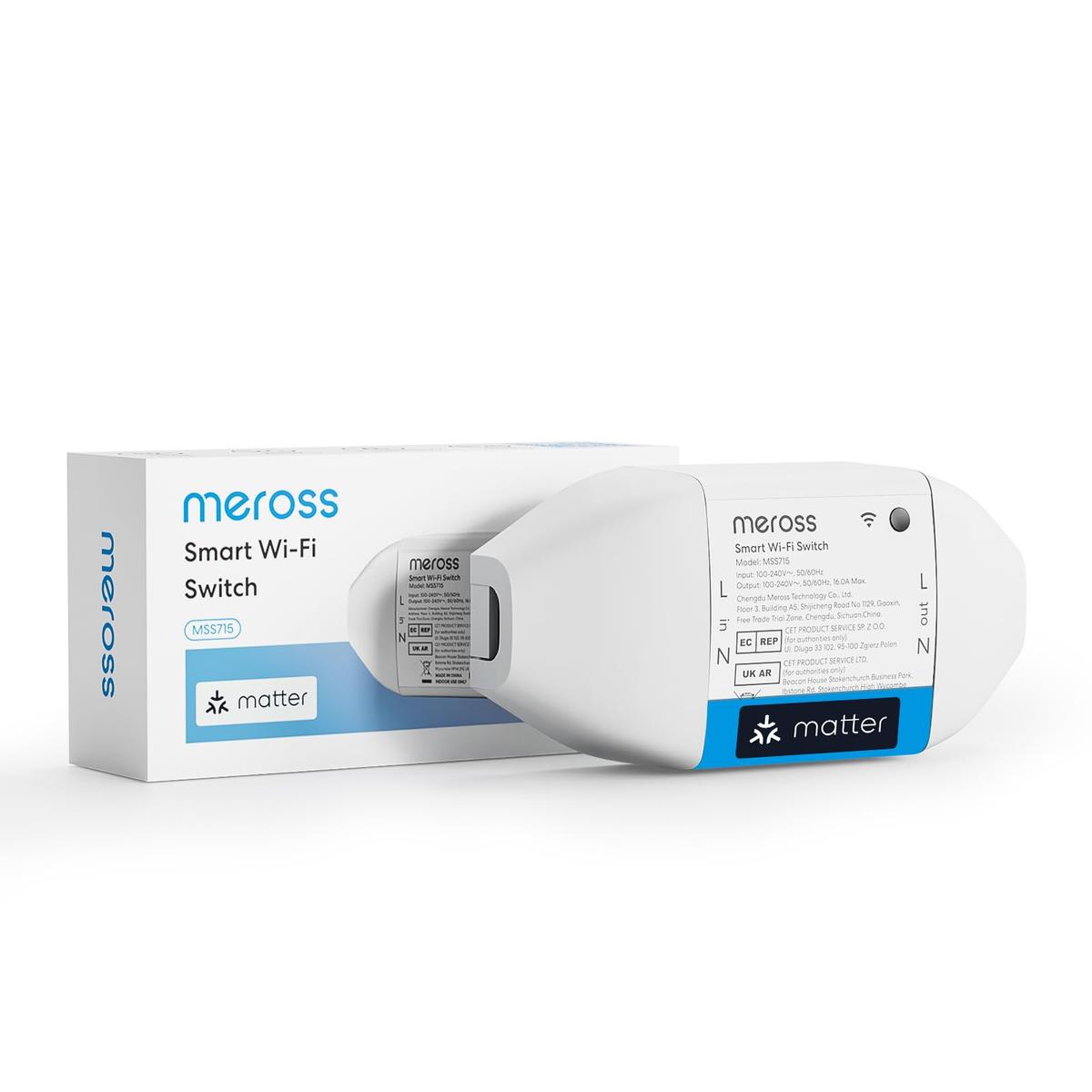 Meross MSS715MA-UN Smart WiFi Switch Matter Compatible 16A HomeKit Power Meter