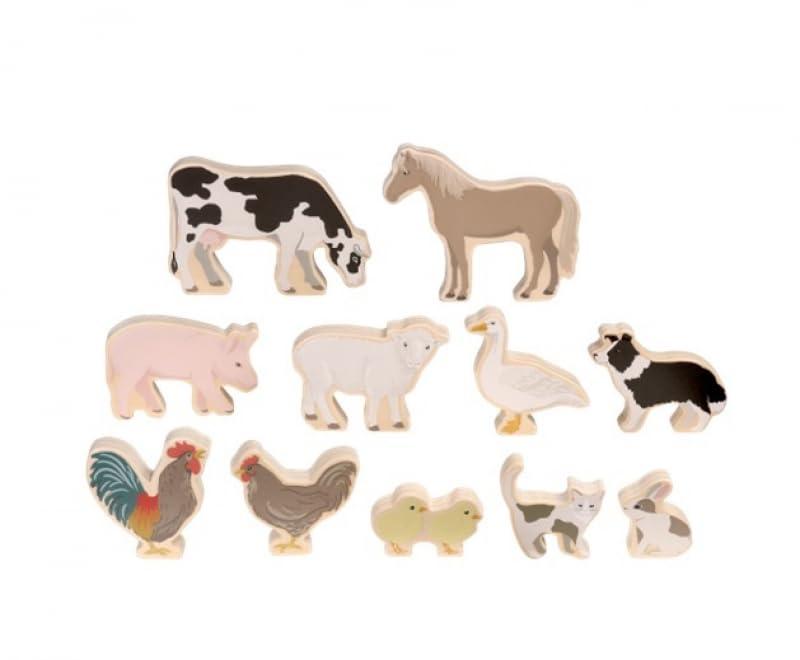 Micki Wooden Farm Animals Playset 11 Pieces Role Play Toy