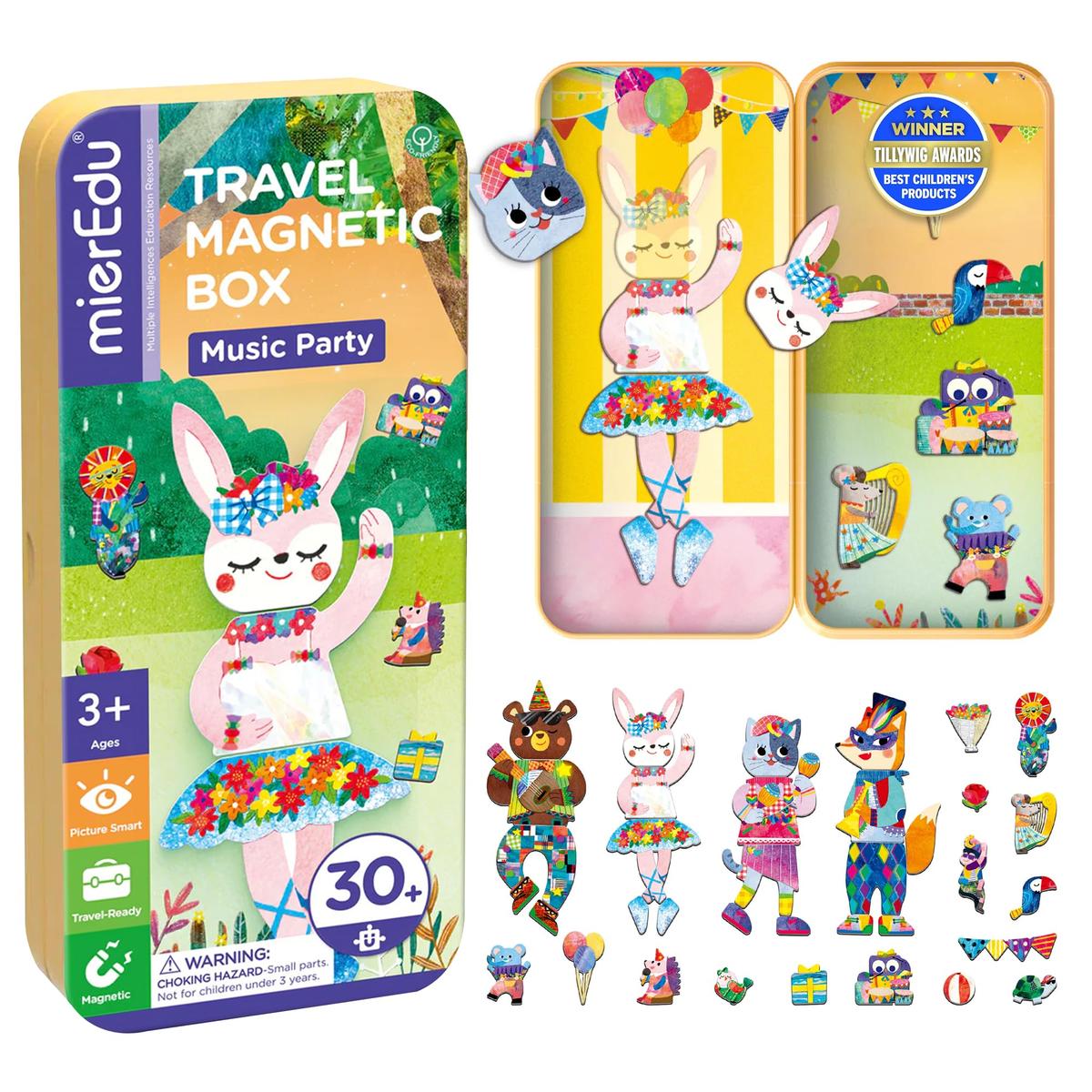 mierEdu Magnetic Travel Game Box Music Animal Theme 2 Scenes 37 Magnets White