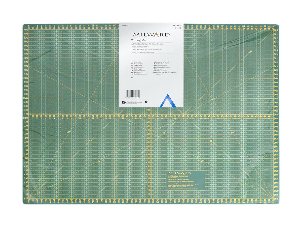 Θα εκτιμήσετε την διπλής όψης επιφάνεια κοπής από την Milward όταν κόβετε μικρότερα κομμάτια υφάσματος χρησιμοποιώντας περιστροφικό κόπτη ή σκαλπέλο, μαχαίρι ή λεπίδα ψαλιδιού. Διαθέτει ικανότητα αυτοθεραπείας, το τσάκισμα στην επιφάνεια της κλείνει και πάλι, το οποίο παρατείνει τη διάρκεια ζωής του ματ αρκετές φορές. Το ματ διαθέτει δίχτυ μέτρησης σε εκατοστά στη μία πλευρά και ίντσες στην άλλη, έχει ευθείες γραμμές.