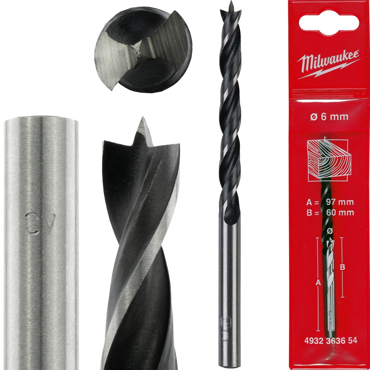 Milwaukee Brad Point Drill Bit 6 x 97 mm Black Oxide Coating