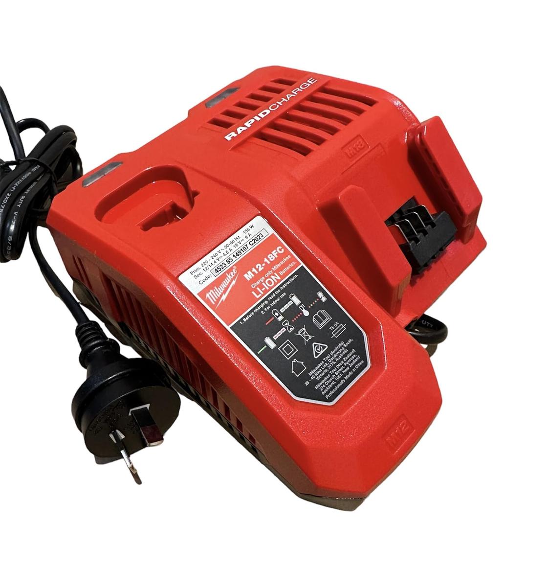 Features and characteristics: Recharges all M18, M14 and M12 REDLITHIUM battery packs. Recharges in sequence - first in, first to charge - resulting in less time needed to manage charging cycles.