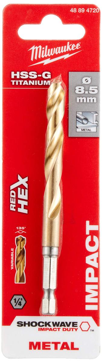 Milwaukee Shockwave HSS-G TiN Metal Drill Bit 8.5 x 114 mm Hex Shank