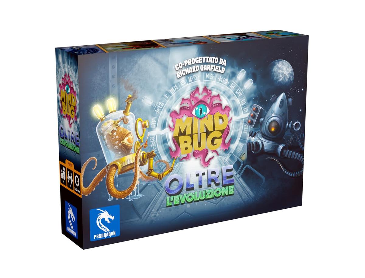 Oltre l&rsquoEvoluzione può essere utilizzato come gioco a se stante o come una nuova espansione per il gioco di carte Mindbug.Le carte di questa espansione possono quindi essere mischiate con le altre scatole oppure utilizzate come gioco base a se stante.Questa espansione introduce il concetto di Evoluzione.Veloce ed entusiasmante gioco di carte per 2 giocatori dal creatore di Magic L&rsquoAdunanza, Richard Garfield.Elementi di Gioco:44 carte,4 carte Mindbug,4 carte Evoluzione,2 carte di consultazione,2 ruote dei punti vita1 regolamento.