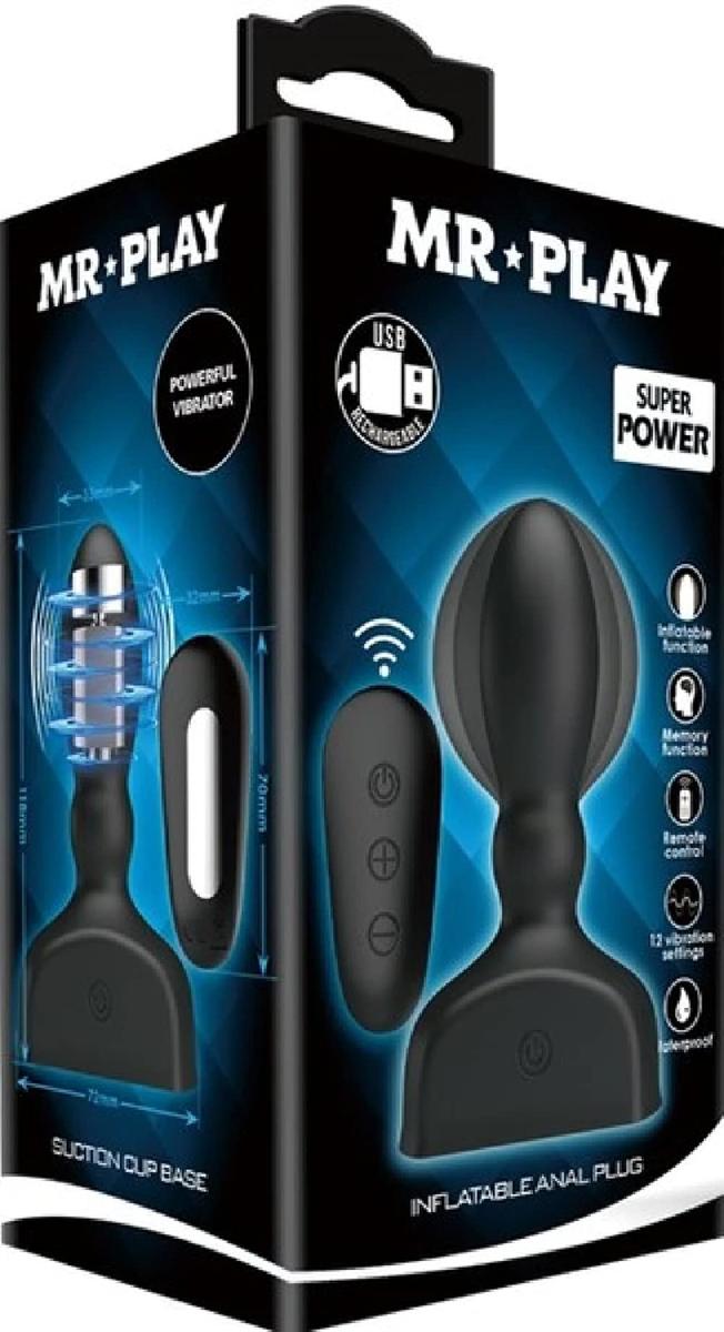 Mr Play Black Inflatable Anal Plug Remote Control