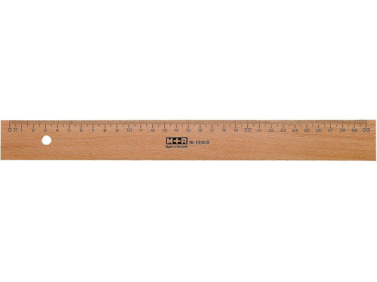 M+R Wooden Ruler 30 cm Beechwood Metal Insert 1 Piece
