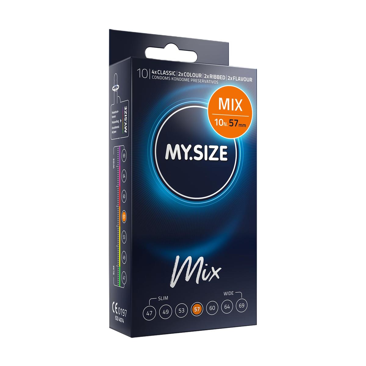 MY.SIZE Mix Condoms Size 4 57 mm Pack of 10 Flavoured, Coloured, Ribbed & Classic