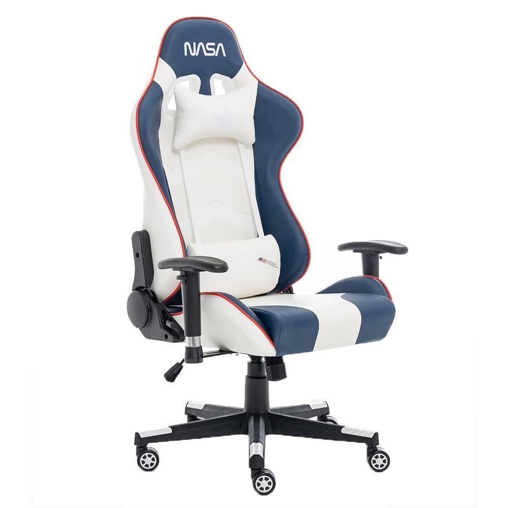If you want to add a touch of originality to your home, you will do so with Gaming Chair NASA SUPERNOVA.Material: LeatheretteMetalCharacteristics: Adjustable BackrestAdjustable ArmrestWith armrestsHeadrestInclination: YesDesign: Modern and ergonomic designRecline angle: 180oMax. supported weight: 150 kgWheels: 5 wheelsColour: BlueWhiteType: Gaming Chair