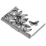 Troika CDC10-A152 Black Flowers Business Card Holder 11 Cards White and Black