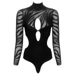 Shimmering Open-Back Bodysuit PU Leather Garters Plus Size Black and Gold