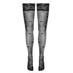 Cottelli Collection Hold-Up Stockings Rose 3 Black with Rose Pattern