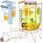 Vilde Glass Beverage Dispenser Jug 3.8L Clear with Rose Gold Accents Includes Tap and Stand