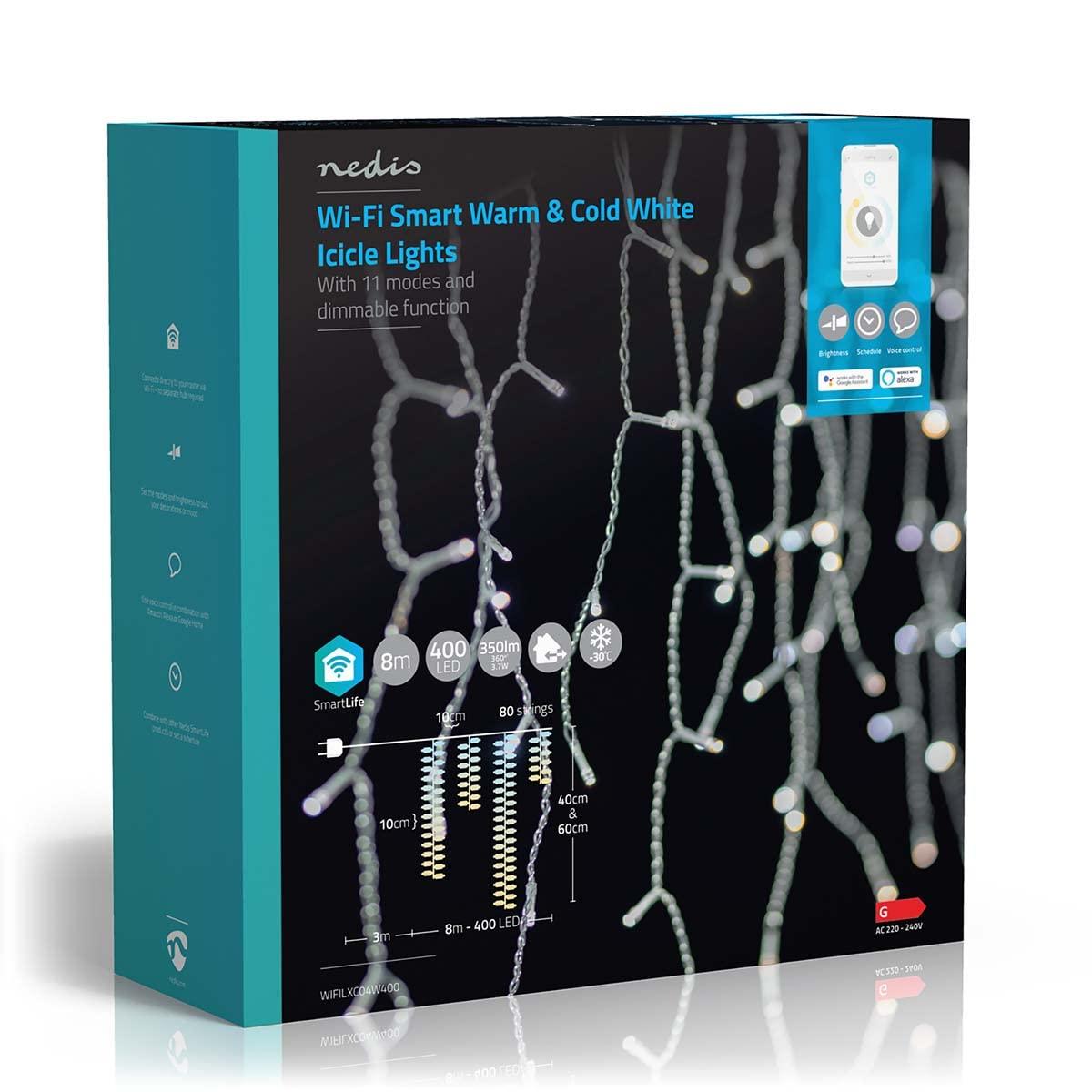 Nedis SmartLife Διακοσμητικά Φώτα LED Παγοκρυσταλλάκια 400 LED Ζεστό έως Ψυχρό Λευκό 8 m Εσωτερικού και Εξωτερικού Χώρου