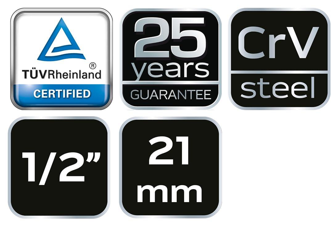 Neo Tools 08-091 Socket Wrench 21 mm 1/2 Drive Magnetic Chrome Vanadium Steel