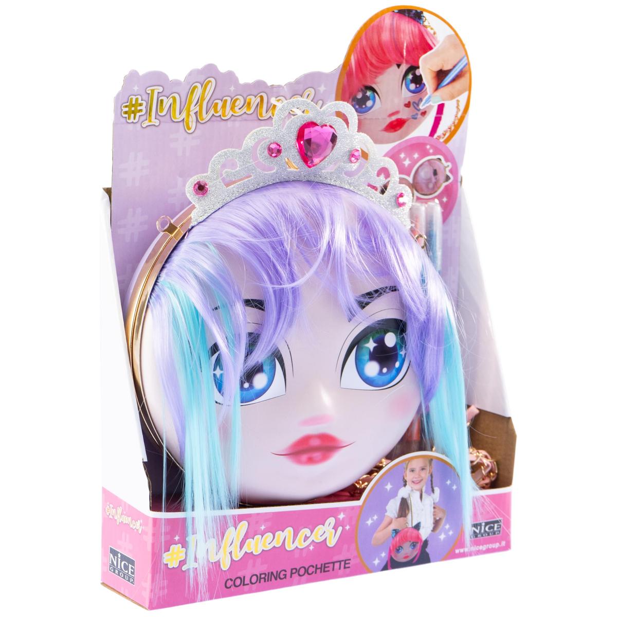Nice Influencer Coloring Pochette Purple Doll Face Design 4 Markers Included