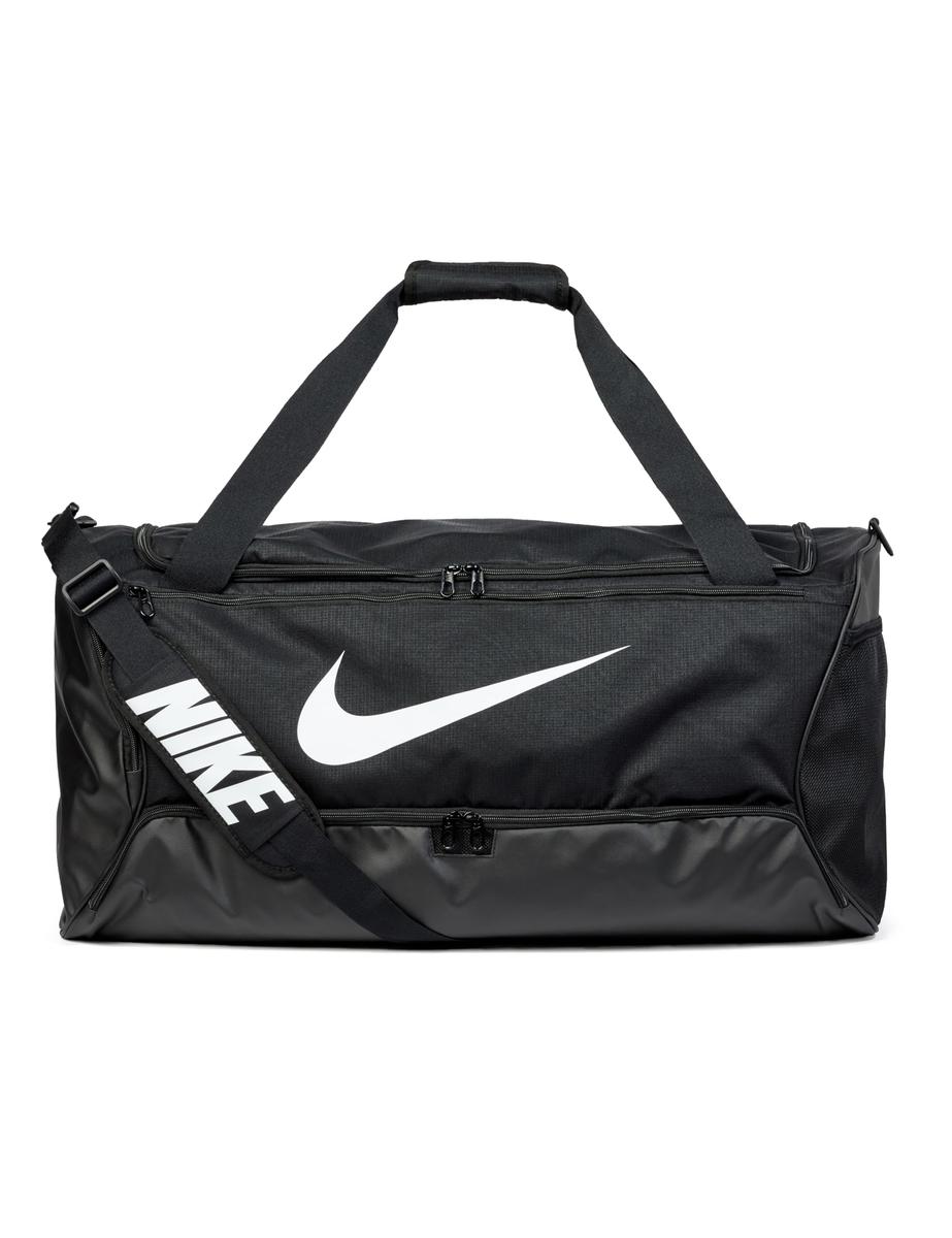 Properties: Nike sports bag There's plenty of space for your essentials in the zippered main compartment internal and external pockets help keep things organized large lock handles make opening easier detachable padded shoulder strap two handles Height: 34.00 cm Width (longer side): 70 cm Depth (shorter side): 37.0 cm Capacity: 95 l Material: 100% polyester Color : black