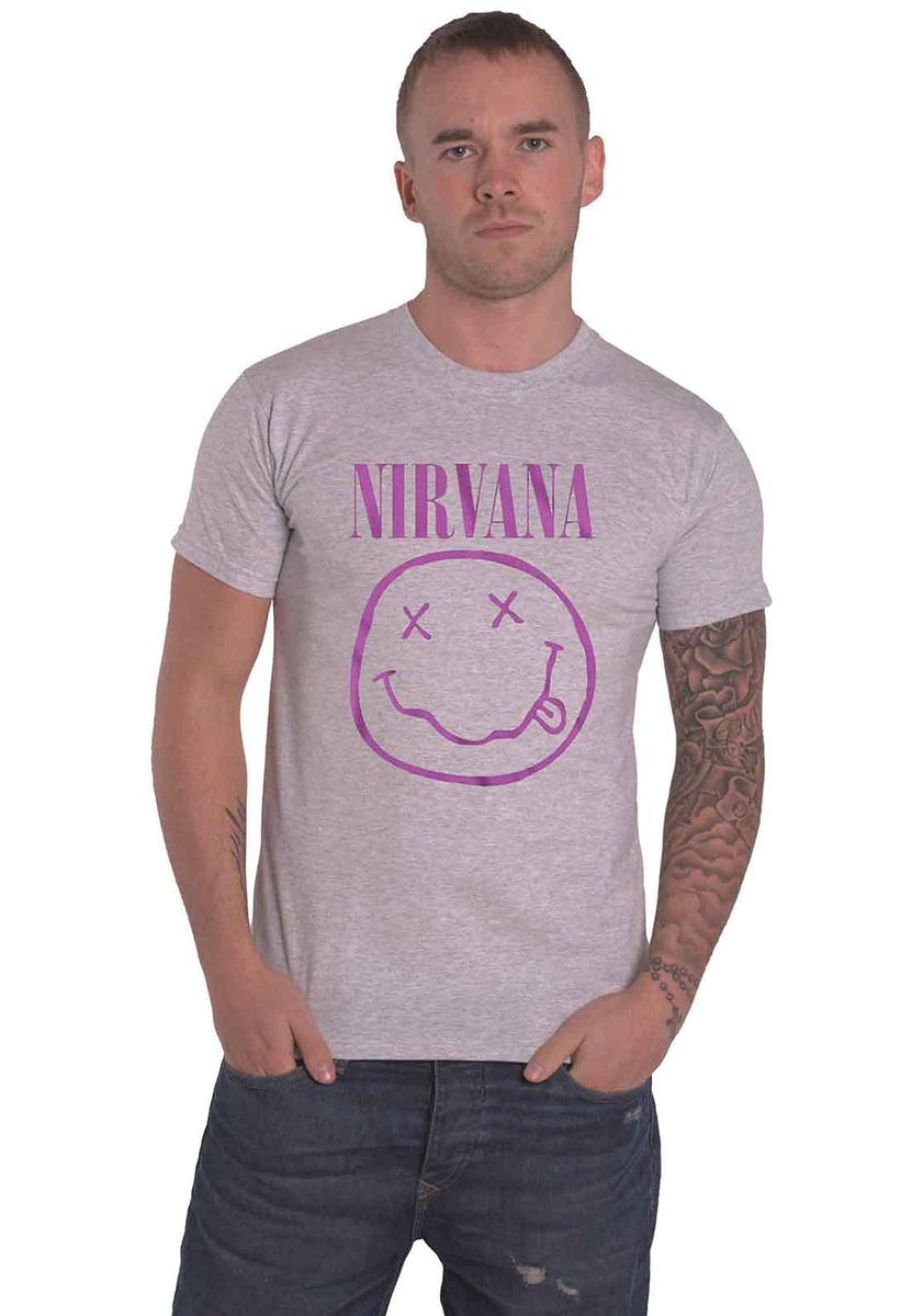 Nirvana Happy Face T-Shirt Purple Unisex Grey Size M