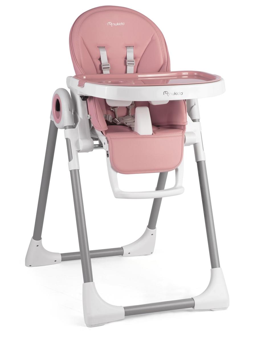 Nukido Belo High Chair Pink Adjustable Height Removable Tray 8 Levels 2 Wheels Easy to Clean