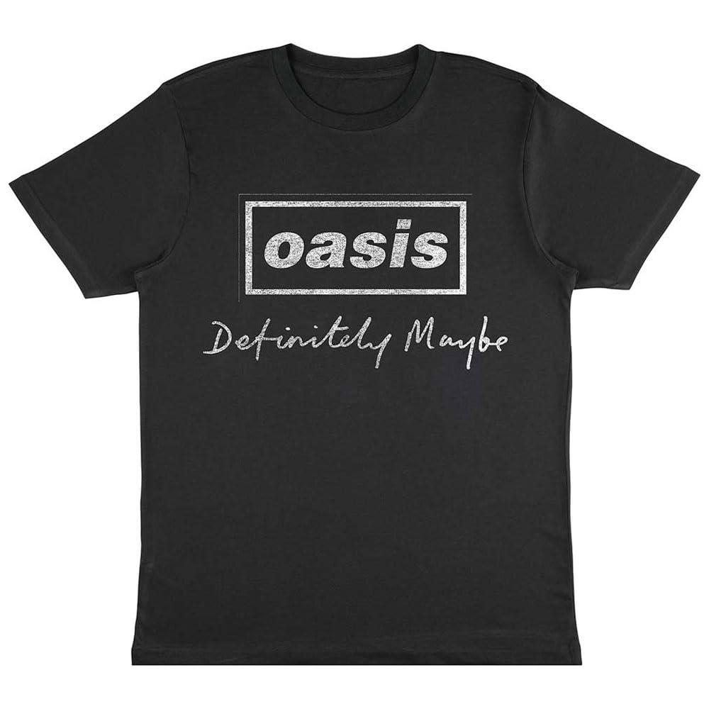 Oasis Definitely Maybe Distressed Text Logo T-Shirt Unisex Charcoal Grey XL