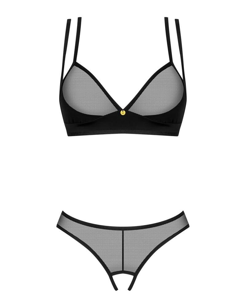 This sexy set is a combination of unique design, comfort and sensuality, perfect for confident women. The bra in soft (soft) cut is fastened at the back, making it easy to put on and take off. The cups, although soft, perfectly emphasize the figure, adding natural grace. The low cut thong style panties are perfectly tailored to accentuate the curves and shapes of a woman's figure. Soft and airy fabric guarantees comfort of wearing, allowing the skin to breathe freely. The straps are not detachable, which adds elegance and sensuality to the set. Adjustable double shoulder straps allow for a perfect custom fit, while providing support and wearing comfort. The set is packaged in an elegant box, which also makes it suitable as a unique gift for a partner or loved one. The 2-piece set, consisting of a bra and panties, is a proposal for women who appreciate high quality, subtlety and sensuality in lingerie. Spandex 15 % polyamide 85 % SizeHipsChestM/L95-105 cm90-99 cmXL/XXL106-116 cm100-109 cmXS/S84-94 cm80-89 cm