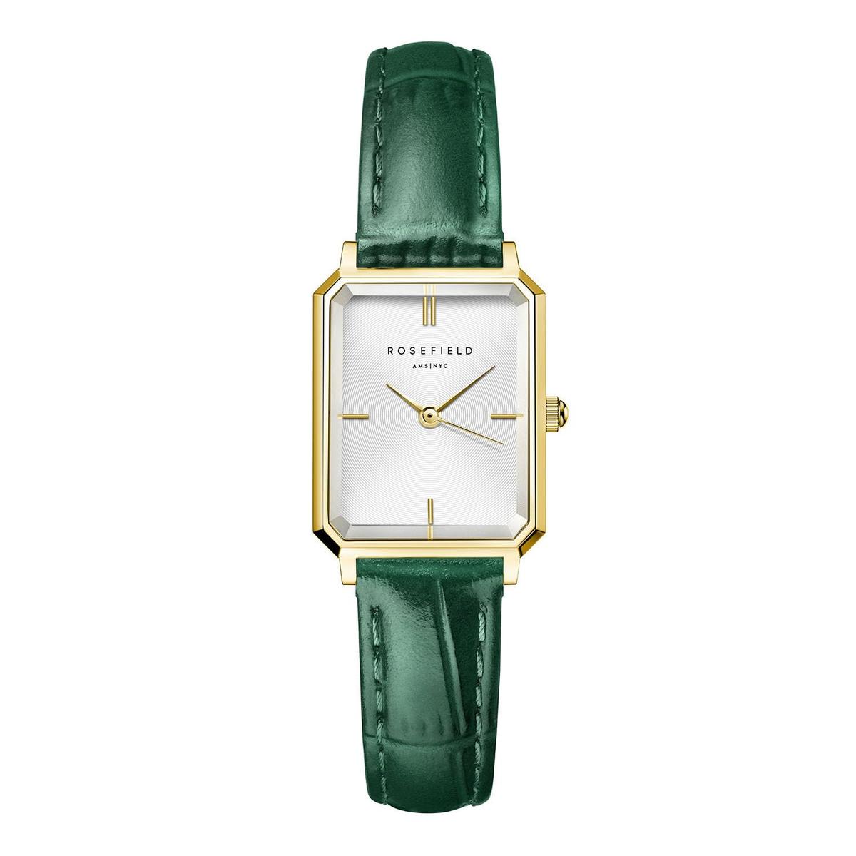 Octagon XS Watch White Emerald Leather Gold Accents OWGLG-O86