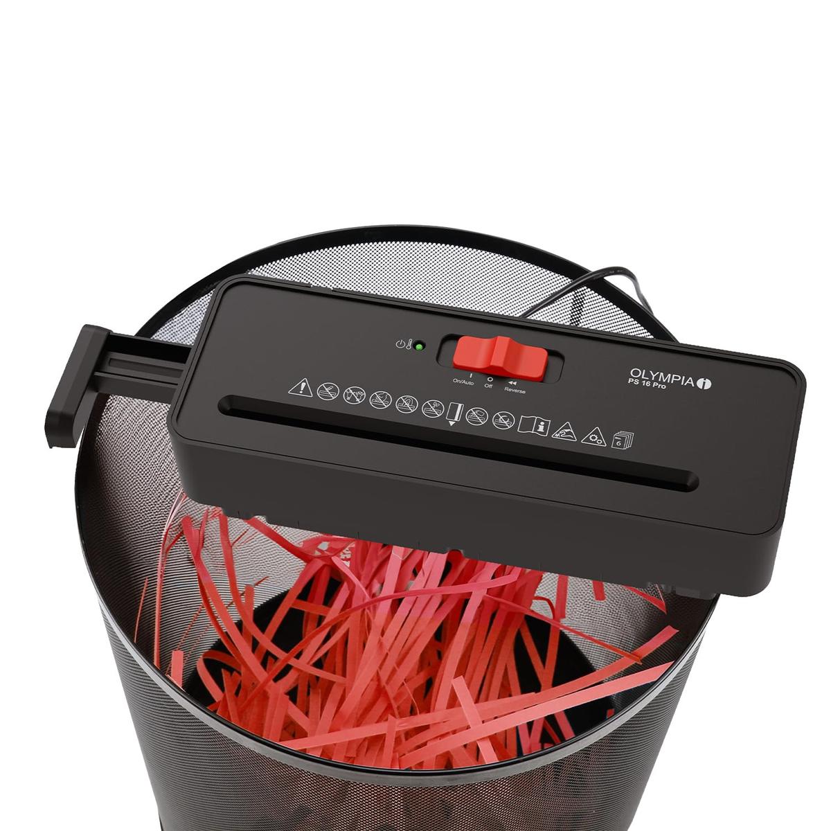 Olympia PS 16 Pro Paper Shredder Black Strip Cut P-2 6 Sheets Capacity
