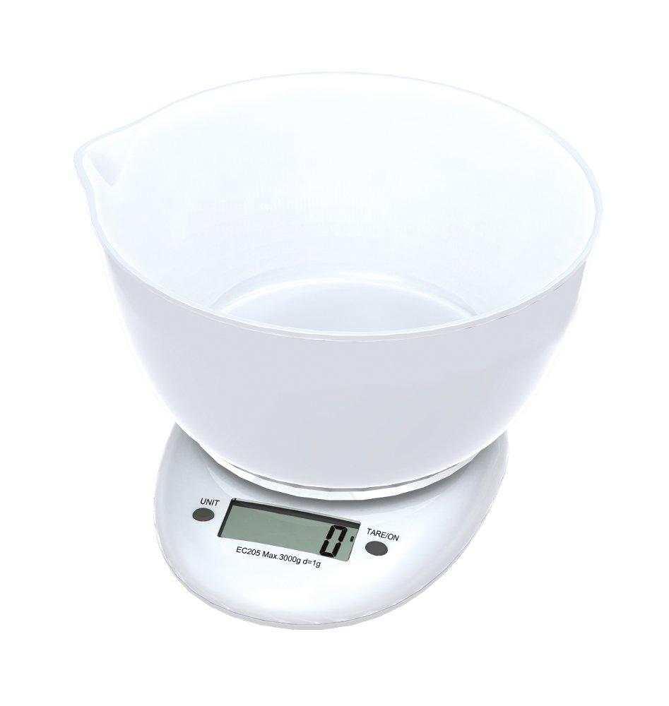 The Omega OBSKW kitchen scale features a handy measuring bowl with a capacity of 1.5 litres. Its maximum capacity is 3 kg and weighs with a 1 gram accuracy. It features low battery and overload indication and it turns off automatically after using. Numbers are displayed on a 44 26 mm clear LCD screen.Max capacity: 3 kgGraduation: 1 g49 19mm LCD digitsEquipped with high strain gauge sensors1 CR2032 battery (included)Automatic zero and switch offLow battery and overload indication